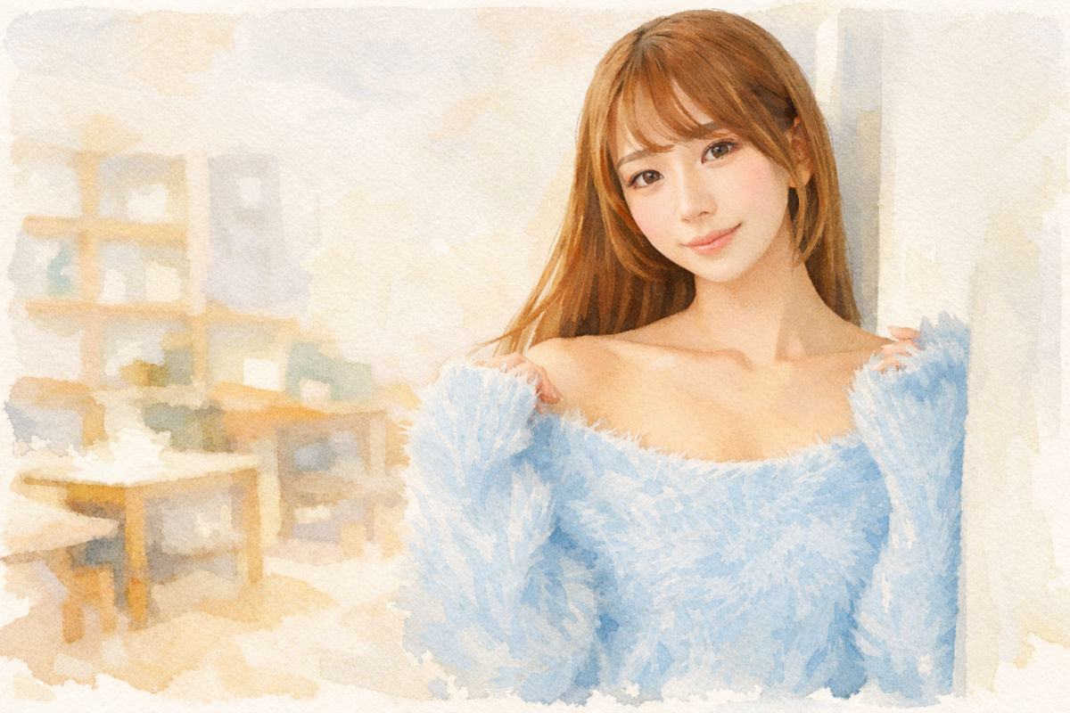 尾崎えりかさんの魅力は、派手さを前面に押し出すタイプではなく、整った顔立ちの中に親しみやすさと落ち着いた色気が同居しているところにあります。いわゆる“強く作り込んだキャラ”で見せるというより、自然な表情や距離感の取り方で惹きつけるタイプで、恋人風の作品からシチュエーション重視の作品まで馴染みやすいのが強みです。本人は、学生時代から英単語などをテスト直前に覚えるような「短期記憶」が得意で、台本を覚えるのも早いと語っており、その対応力が現場での信頼やVR作品での評価にもつながったとされています。